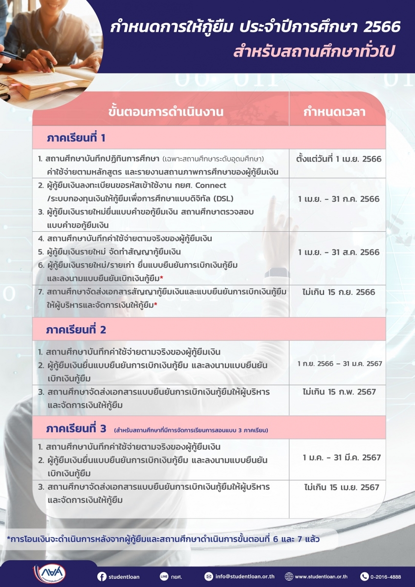 กำหนดการให้กู้ยืมเงินเพื่อการศึกษา ดังนี้